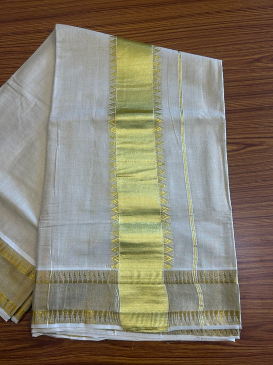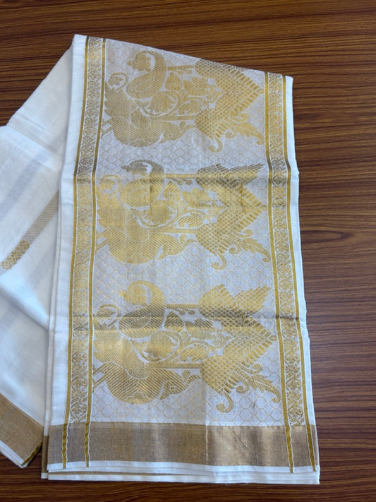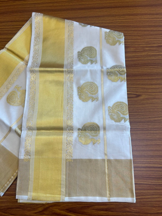25% Discount! Kaitharikada Kerala Cotton Saree Off white - 12 inch Kasavu Zari with Peacock Pattern putta Design- 7KK1009KK