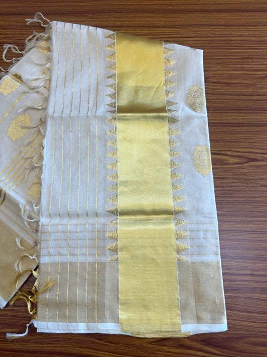 25% Discount! Kaitharikada Kerala Saree - Kasavu Tissue - Kasavu Zari Temple Embroidery- 8KK1009KK