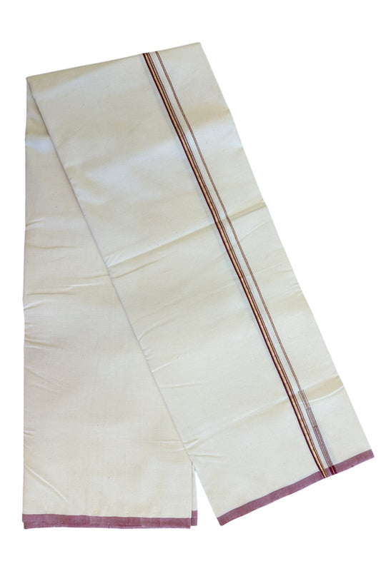 DMK Veshti - 22% Discount !! KaithariKada Balaramapuram Double Off white - (Unbleached) Mundu/Dhoti - 100X100 - 1 inch Puliyilakkara Maroon & Black Chutty Kara - 10KK5074ASH