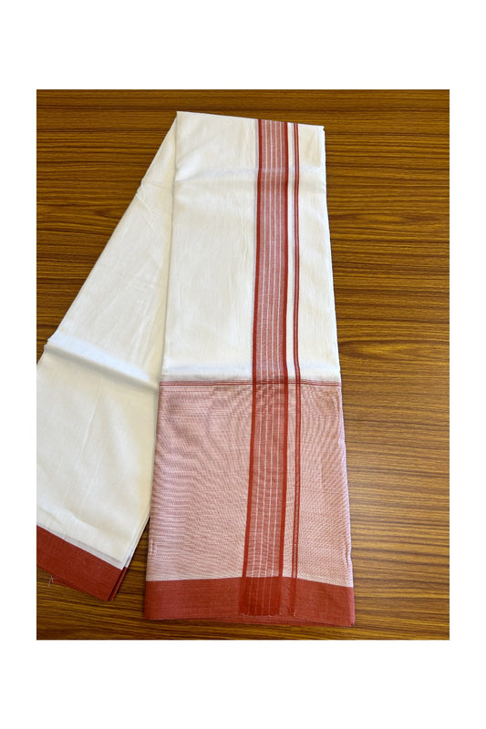 15% DISCOUNT!! Kaitharikada Balaramapuram 100% Cotton PURE WHITE Double Mundu/Dothi-100x100 - 2 Inch RED Striped Cotton Kara 3.75m (8 Muzham) - 32KK5067KK