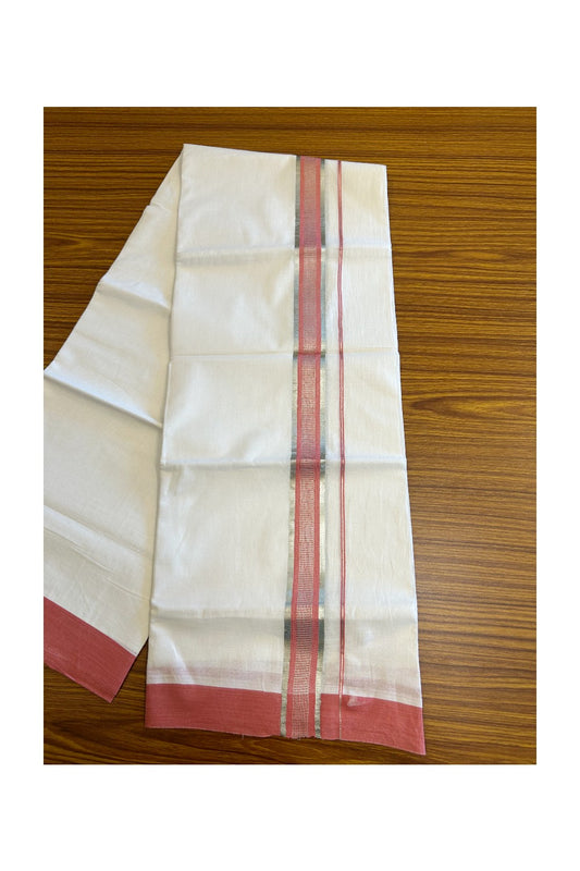 24% DISCOUNT!! Kaitharikada Balaramapuram 100% Cotton PURE WHITE Double Mundu/Dothi-100x80 - 2 Inch Pink & Silver Striped Cotton Kara - 35KK5067KK