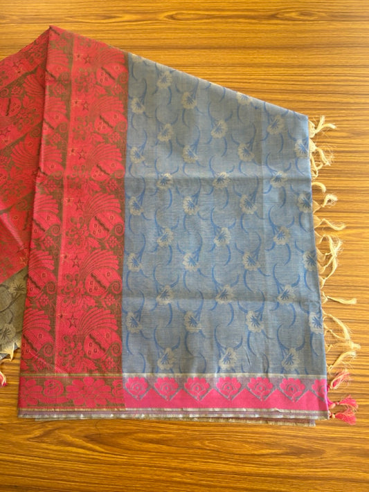 Kerala Colour Cotton Saree - Ash Blue Cream & Magenta Mango Design Kara - Kaitharikada - 5KK1007RJT