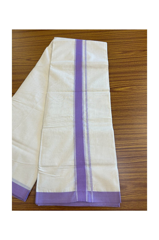 20% Discount !! KaithariKada Balaramapuram 100% Cotton Double Off white - (Unbleached) Mundu/Dhoti-100x80 - 1.75inch Violet Kara 3.70 mtr - 2KK5045ASH