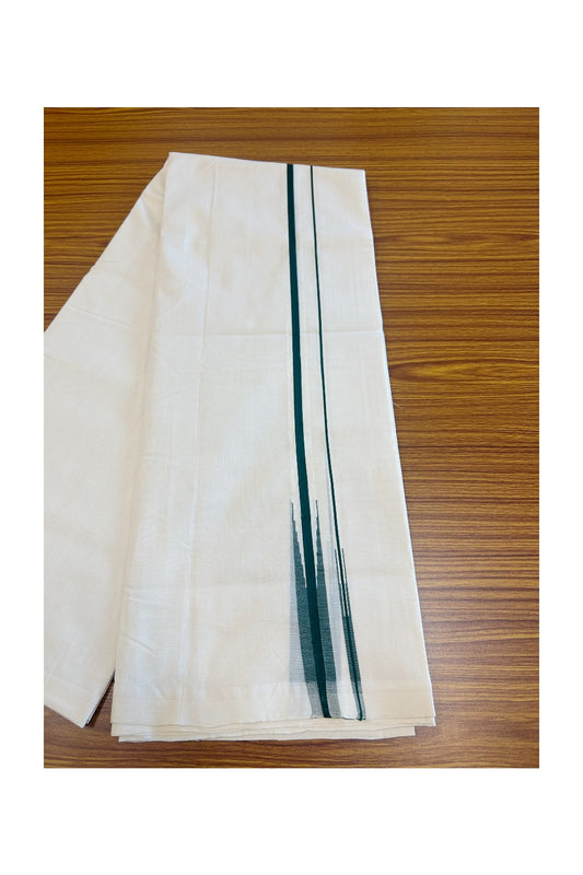 25% DISCOUNT!! KaithariKada HANDLOOM UNAKKUPAAV Balaramapuram - 100% PURE Cotton OFF White Double - (Unbleached) Mundu/Dothi - 0.75 inch Puliyilakkara Green Double chutty - 2KK5049REA
