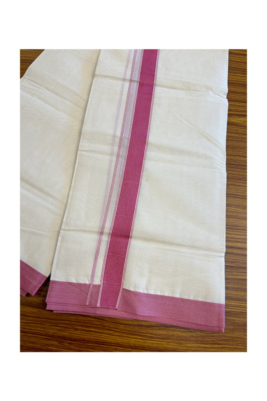 20% Discount !! KaithariKada Balaramapuram 100% Cotton Double Off white - (Unbleached) Mundu/Dhoti-100x80 - 1.75inch Dark Pink Kara 3.70 mtrs (8 Muzham) - 3KK5045ASH