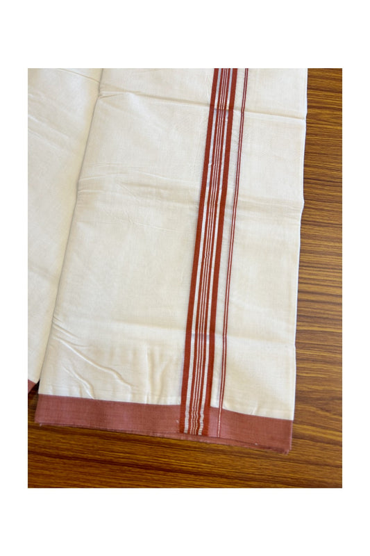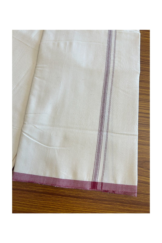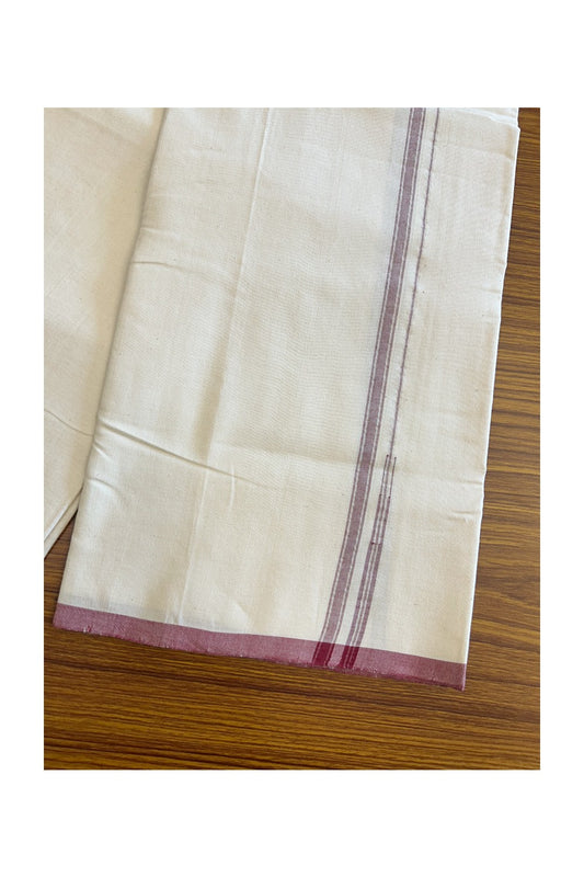 ADMK VESHTI 18% Discount !! KaithariKada Balaramapuram Double Off white - (Unbleached) Mundu/Dhoti - 100X100 - 1.5 inch Puliyilakkara Maroon & Black Striped Chutty Kara - 19KK5045ASH