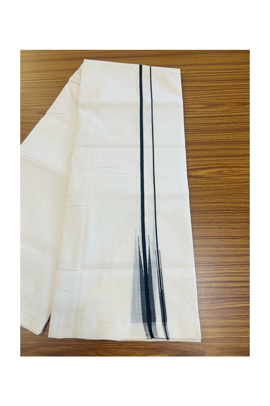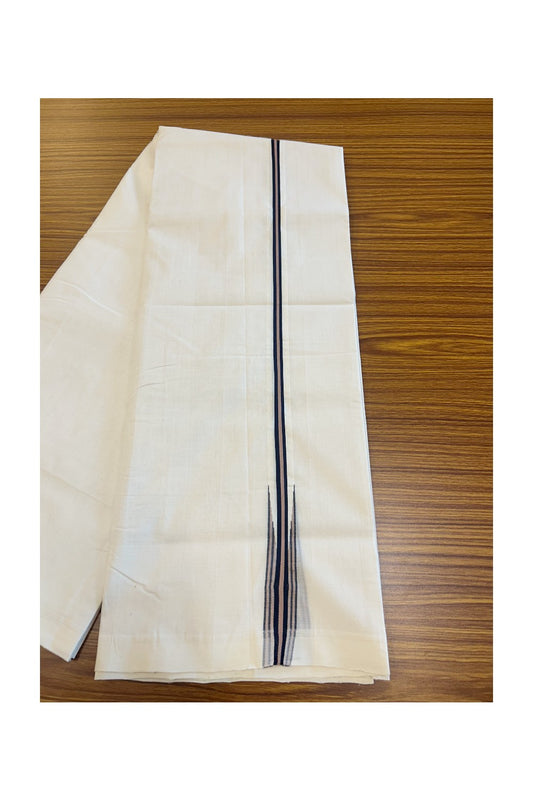 25% DISCOUNT!! KaithariKada HANDLOOM UNAKKUPAAV Balaramapuram - 100% PURE Cotton OFF White Double - (Unbleached) Mundu/Dothi - 1 inch Puliyilakkara Navy Blue Stripes chutty - 6KK5049REA