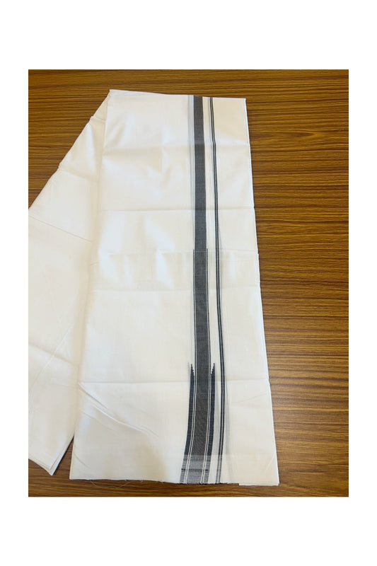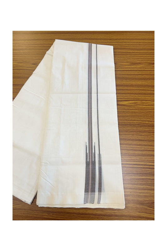 25% Disocunt! NEW PURE WHITE HANDLOOM UNAKKUPAAV Balaramapuram - 100% Cotton Double Pure White - Mundu/Dhoti - 100x100 1.25 inch BLACK & BROWN Striped CHUTTY Kara 3.68 mtrs (8 Muzham) - 5KK5048REA