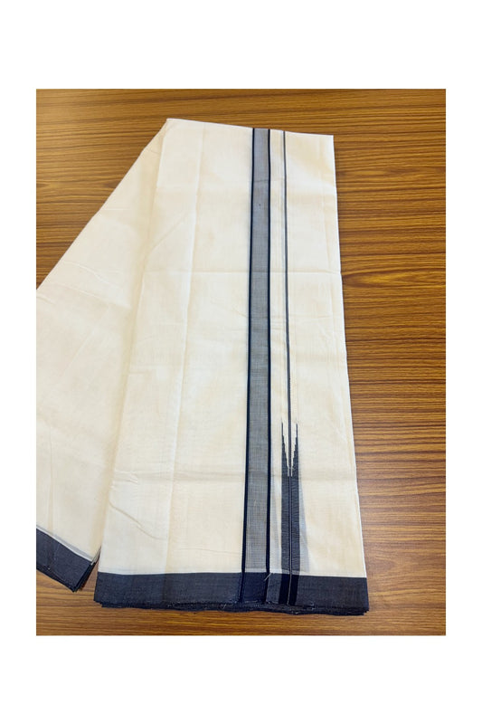 25% DISCOUNT!! KaithariKada HANDLOOM UNAKKUPAAV Balaramapuram - 100% PURE Cotton OFF White Double - (Unbleached) Mundu/Dothi - 0.75 inch Puliyilakkara Black Double chutty - 5KK5049REA