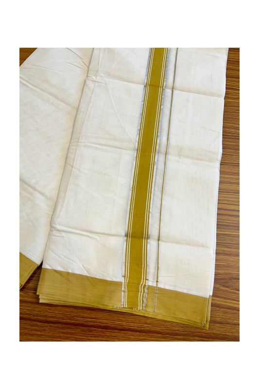35% Discount !! KaithariKada Balaramapuram 100% Cotton Double Off white -(Unbleached) Mundu/Dhoti-100x100 - 2.25inch Silver Kasavu & Mustard Yellow Striped Kara- 9KK5045ASH