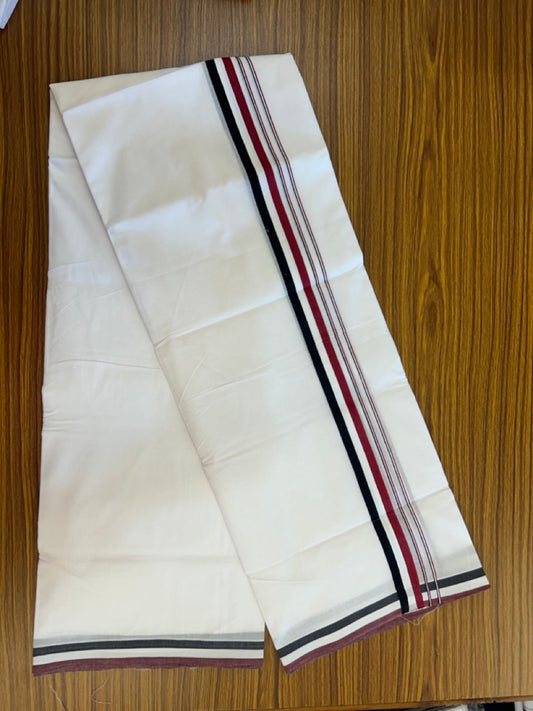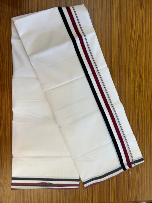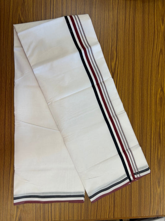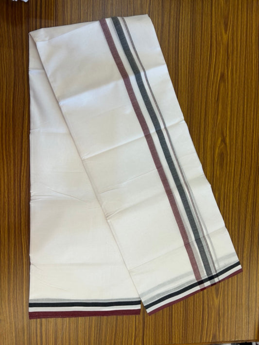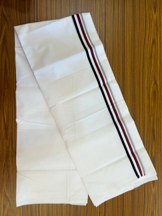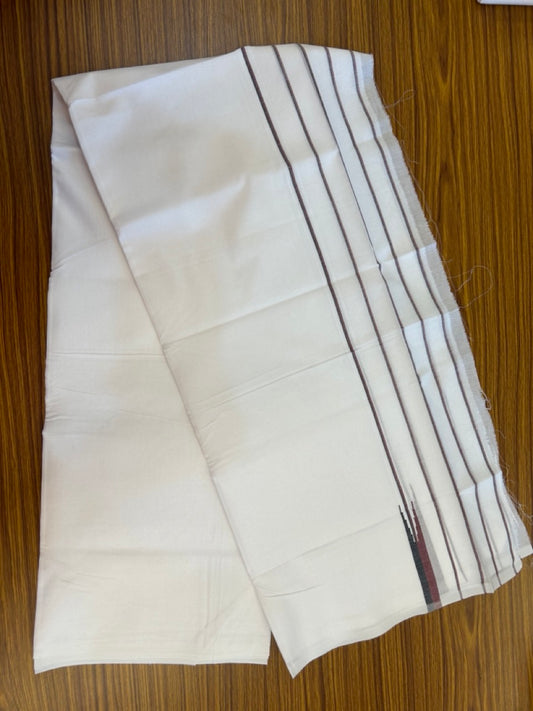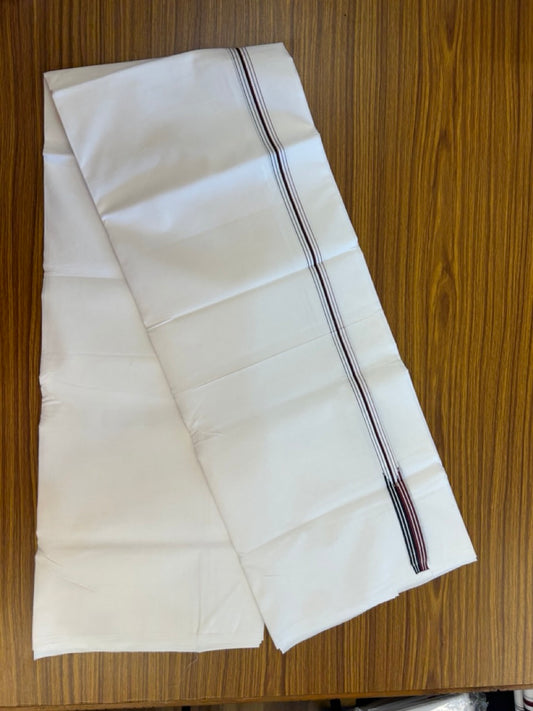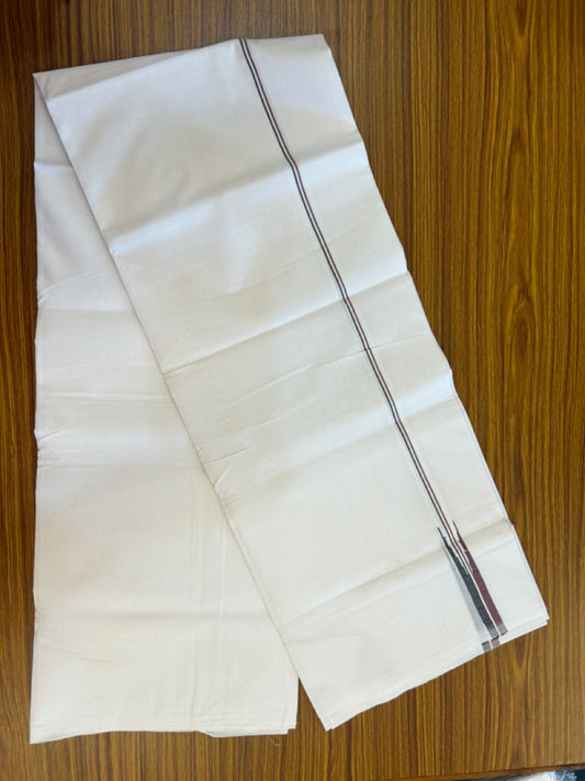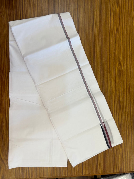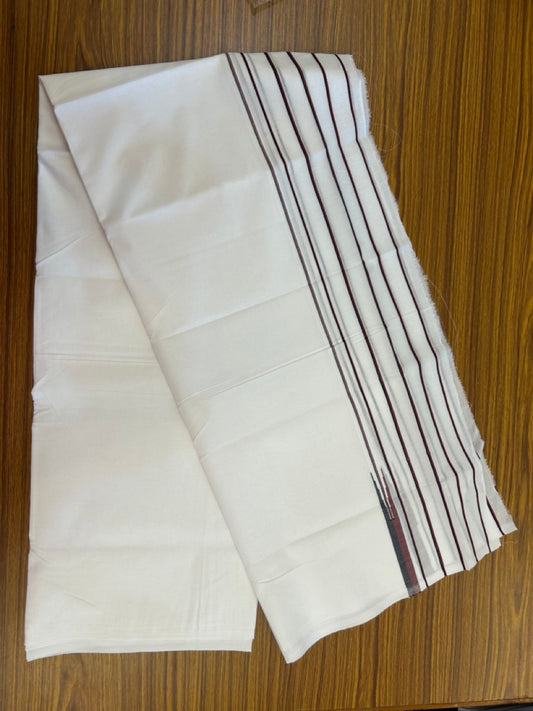 Admk Veshti 20% Discount ! KaithariKada Balaramapuram 100% Cotton Pure White Double Mundu/Dhoti- 100X100- 0.75 Inch Puliyilakkara 6 Line Maroon & Black Chutty Kara - 15 KK5297 ASH