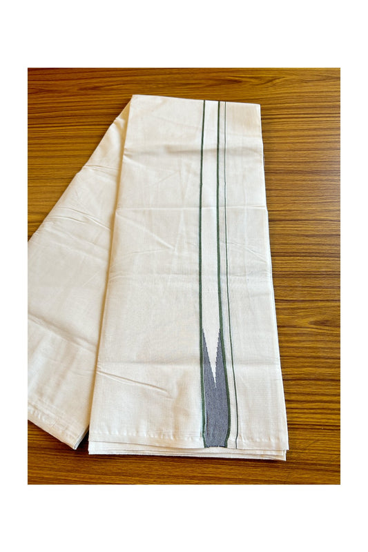 26% Offer! KaithariKada Balaramapuram 100% Cotton Double Off White - (Unbleached) Mundu/Dhoti-100x100 1.65 Inch Puliyilakkara Olive Green Heavy Chutty Black Stripes - 1KK484ASH