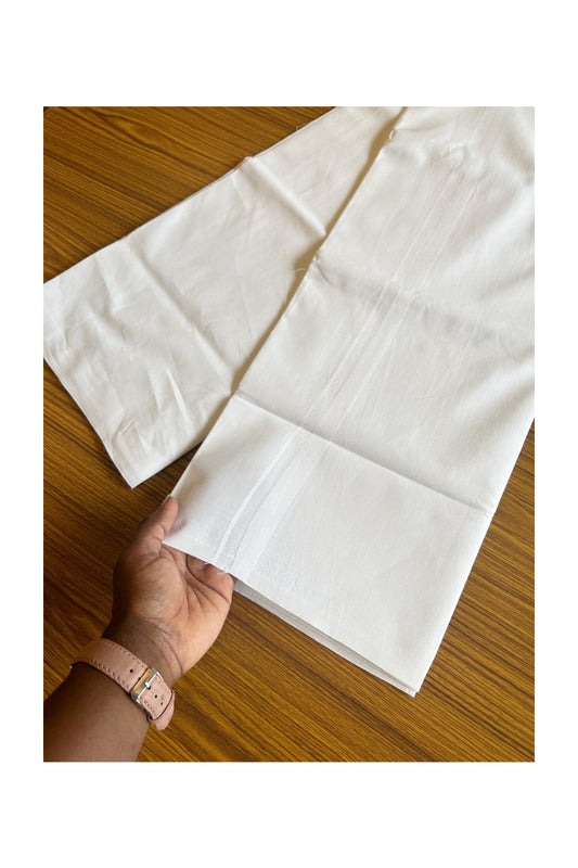 Panchakacham Dhoti - 15% Discount! KaithariKada Cotton Mix Pure White - 80x80 thread - 80% Cotton & 20% Polyester - North Indain Attached Gamcha 9X5 Dhoti - Kasav 1.25 inch Border - 1KK5008PMC