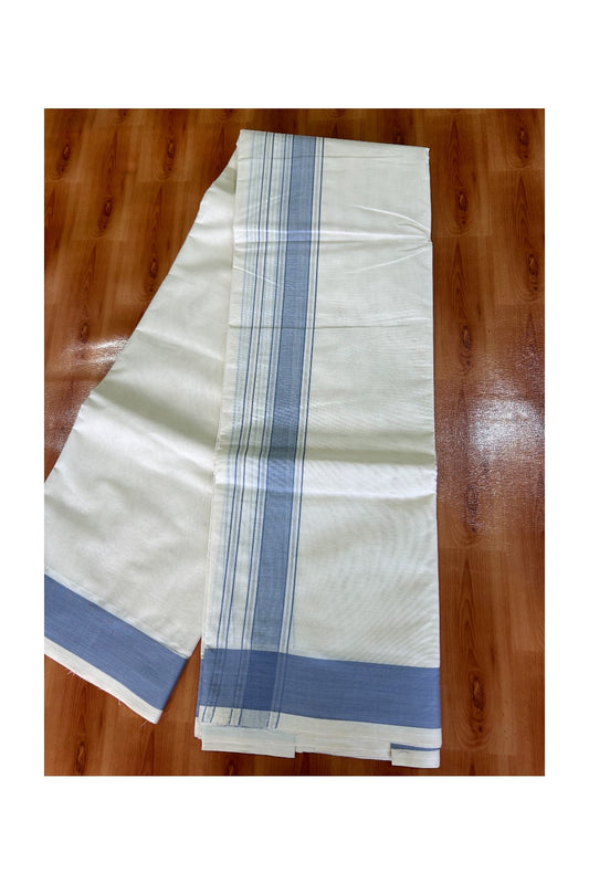 KaithariKada Balaramapuram 100% Cotton off white - (Unbleached) Double Mundu/Dhoti - 100X100 Shaded Blue Black & Silver Striped kara - 4KK5003PMC