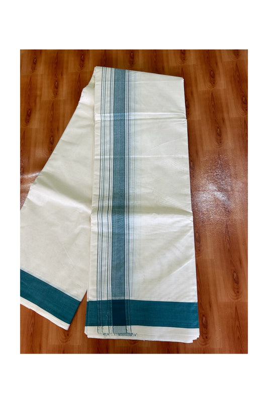 Panchakacham Dhoti -36% Discount KaithariKada 100% Cotton Off White - (Unbleached)- Pure Cotton - 100x 100 thread - North Indian Attached Gamcha 9X5 Dhoti Teal Green Striped 2.65 inch kara - 6KK5004PMC