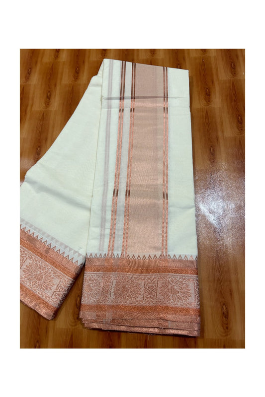 Panchakacham Dhoti - 37% DISCOUNT! KaithariKada - Cotton Mix - Off White - (Unbleached) - 80x80 thread- 80% Cotton & 20% Polyester - NORTH INDIAN - ATTACHED GAMCHA 9X5 Dhoti 5 inch Copper kara with Copper Design border - 6KK5005PMC