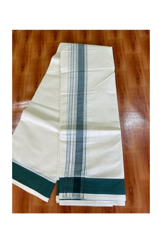 Panchakacham Dhoti - 36% Discount KaithariKada 100% Cotton Off White - (Unbleached)- Pure Cotton - 100x100 thread - North Indian Attached Gamcha 9X5 Dhoti Dark Green Striped 2.75 inch kara - 8KK5004PMC