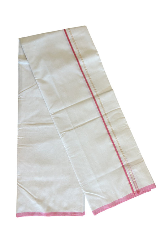 Signature Kaitharikada Exclusive Single Dhoti - 25% Discount! 100% Cotton Balaramapuram Handloom Single Mundu/Dhoti - Off White - (Unbleached) 0.25 Inch Pink & Silver Kasav Chutty Kara(2 meter / 4 muzham) - 2KK502KK