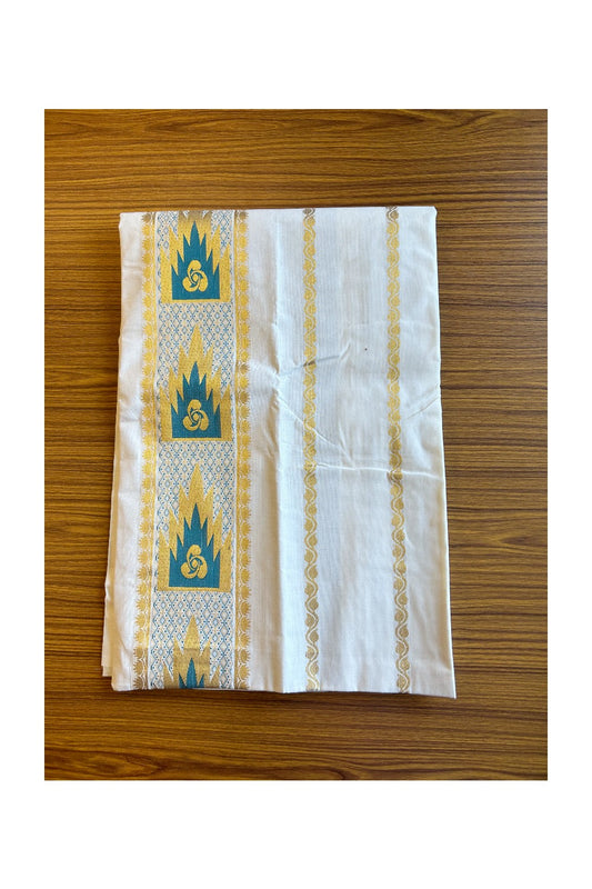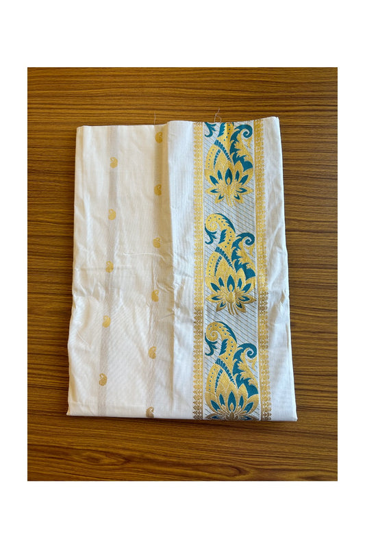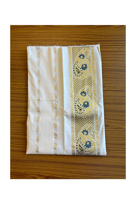 10% Discount ! KaithariKada Balaramapuram 100% Cotton Double Off white - (Unbleached) Mundu/Dhoti-100x100 1 cm Puliyilakkara Chutty Peacock Blue Kara.- 37KK500KK