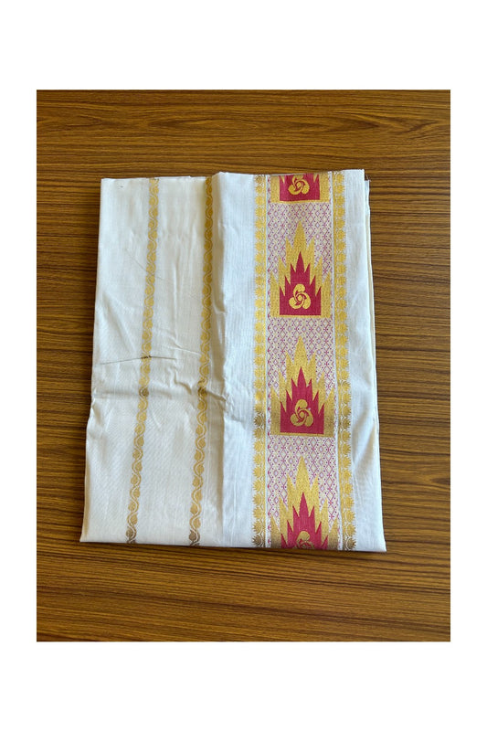 Signature Kaitharikada Exclusive Single Dhoti - 25% Discount! 100% Cotton Balaramapuram Handloom Single Mundu/Dhoti - Off White - (Unbleached) 0.25 Inch Pink & Kasav Chutty Kara (2 meter / 4 muzham) - 1KK502KK