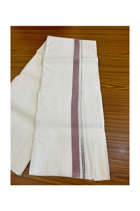 Dmk Veshti - 31% Discount! KaithariKada Balaramapuram 100% Cotton Single Pure White Mundu/Dhoti-100X100- 0.5 Inch Puliyilakkara Maroon & Black Chutty (2 meter / 4 muzham) - 12KK487KK