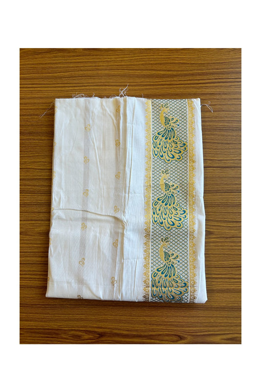 10% Discount ! KaithariKada Balaramapuram 100% Cotton Double Off white - (Unbleached) Mundu/Dhoti-100x100 1 cm Puliyilakkara Chutty Peacock Green Kara.- 38KK500KK