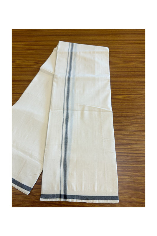 25% Discount ! KaithariKada 100% Cotton Balaramapuram Handloom Off white (Unbleached) Single Mundu/Dhoti - 0.75 inch (2 meter / 4 muzham) Ash Black Kara - 2.