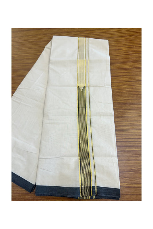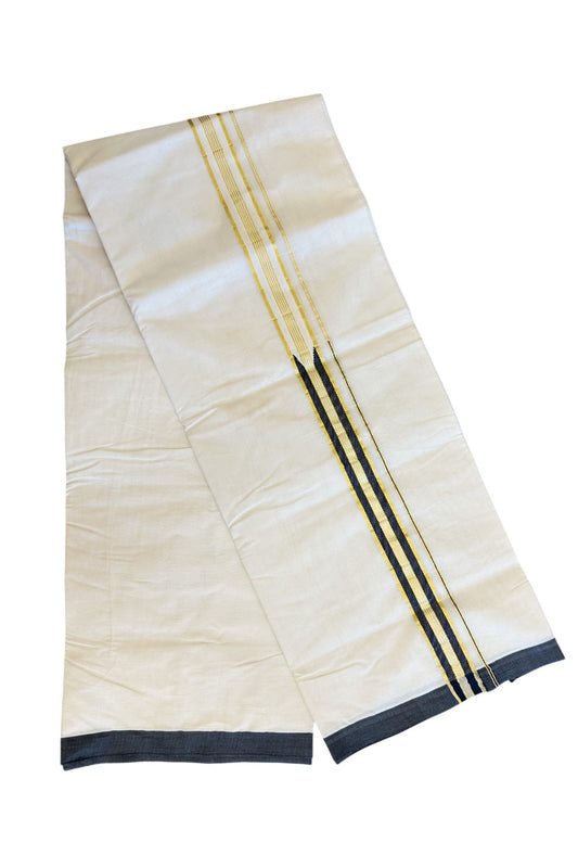20% Discount! KaithariKada Balaramapuram 100% Cotton Double Off white - (Unbleached) Mundu/Dhoti-100x100 Chutty Heavy Designer Black & Kasavu 1.25 inch Kara- ASH019.