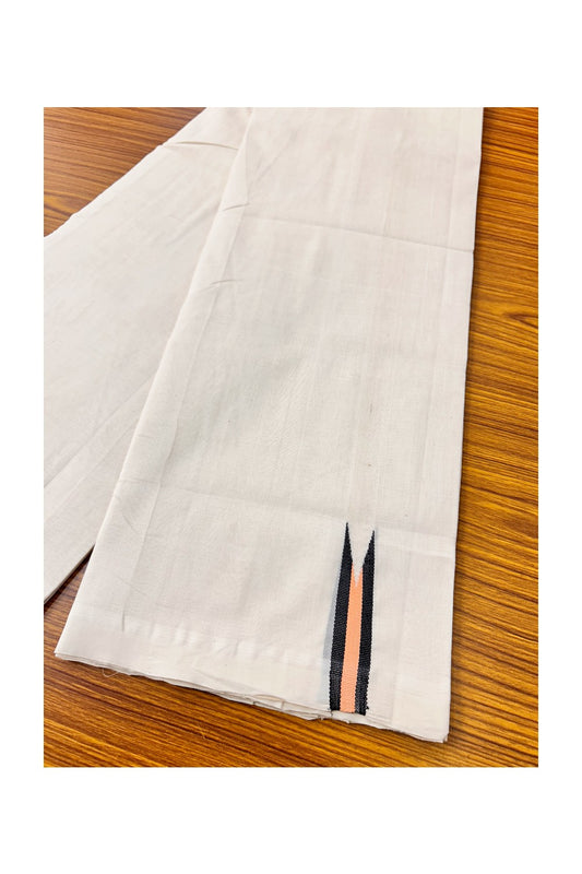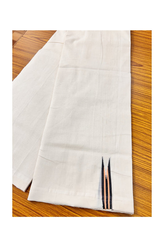 25% Discount! KaithariKada Balaramapuram Handloom Unakkupaav- 100% Pure Cotton 100x100 Double Mundu/Dhoti Off White (Unbleached) - Puliyilakkara Black+Peach 0.75 inch Chutty Kara -15RAM