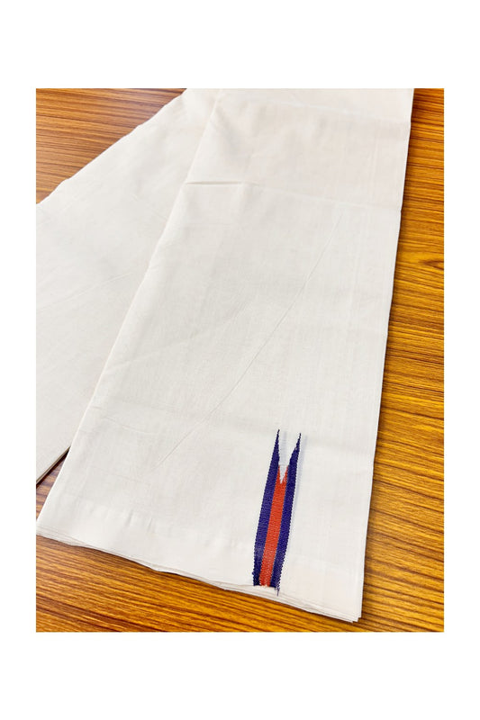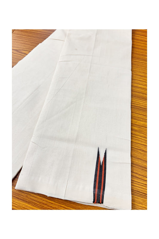 25% Discount! KaithariKada Balaramapuram Handloom Unakkupaav- 100% Pure Cotton 100x100 Double Mundu/Dhoti Off White (Unbleached) - Puliyilakkara Navy+ Brown Red 0.75 inch Chutty Kara-16RAM