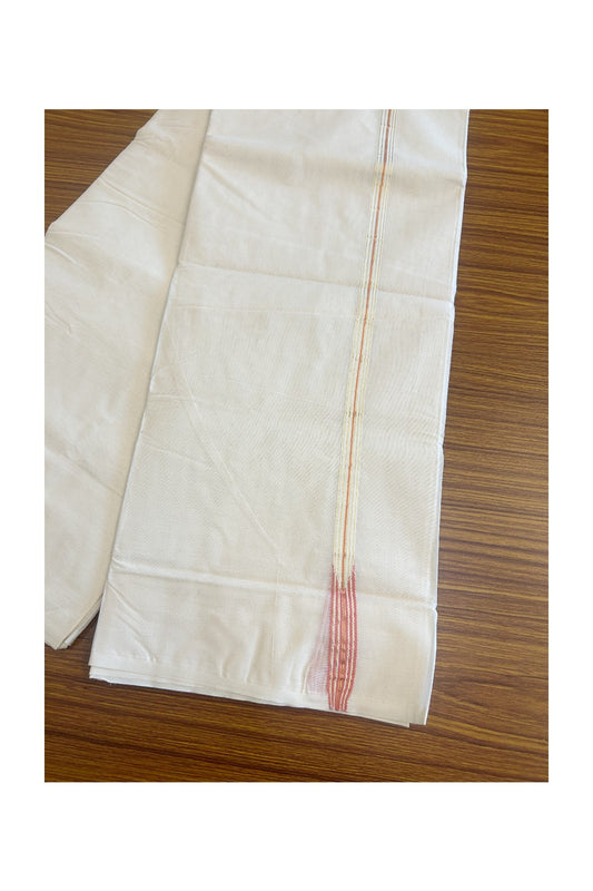 22% Discount! KaithariKada Balaramapuram 100% Cotton Double - (Unbleached) Mundu/Dhoti-100x100 Chutty Peach & Golden Kasavu 0.75 inch Kara- 23ASH03.