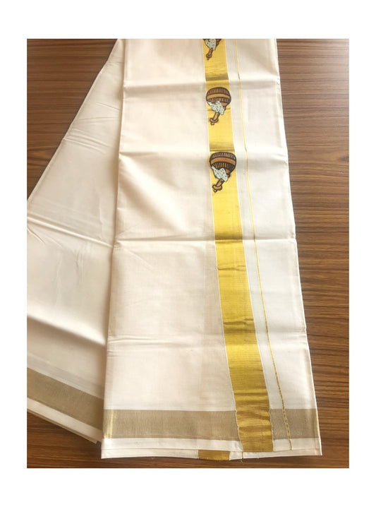 20% Discount! KaithariKada Balaramapuram 100% Cotton Double Off white - (Unbleached) Mundu/Dhoti-100X100- Kasav Ghee Pot Mural paint Design 2. inch Kara.- KKDOT3.