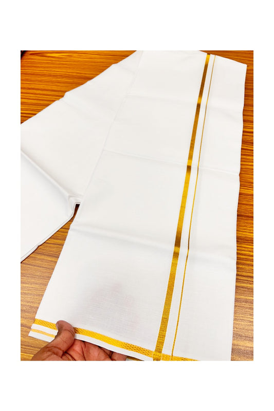 10% Discount! KaithariKada Balaramapuram 100% Cotton Handloom Double Off white (Unbleached) Mundu/Dhoti-100X100- 2 inch Gold Kasav & Red Kara-25.
