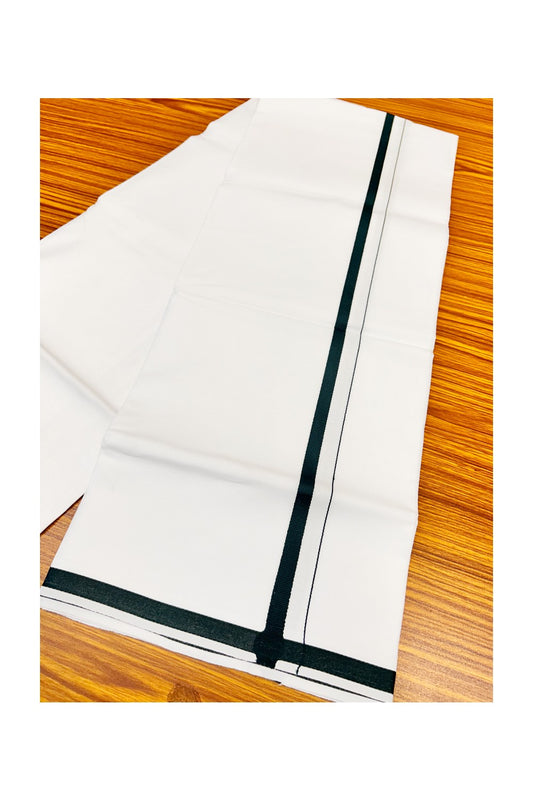15% Offer! KaithariKada 100% Cotton Pure White Single Mundu/Dhoti-40X40 2cm (2 meter / 4 muzham) Dark Green Kara- 12sar