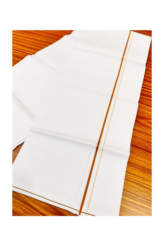 15% Offer! KaithariKada 100% Cotton Pure White Single Mundu/Dhoti-40X40 Dark Brown 1.5cm (2 meter / 4 muzham) Kara- 6sar