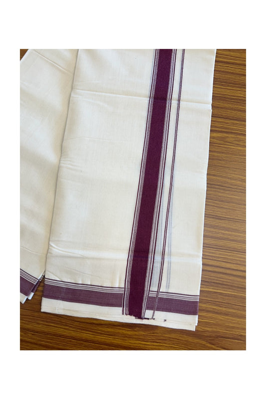 25% Discount! KaithariKada Balaramapuram Handloom 100% Cotton Double Off white - (Unbleached) Mundu/Dhoti-100X100- 2 inch Coffee Brown Kara-35.