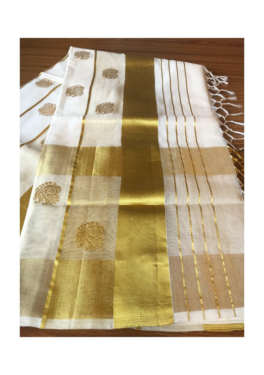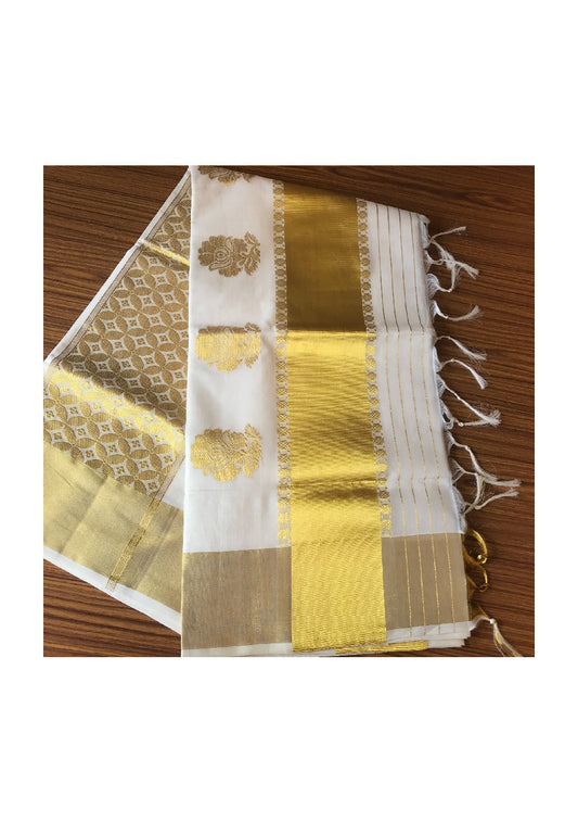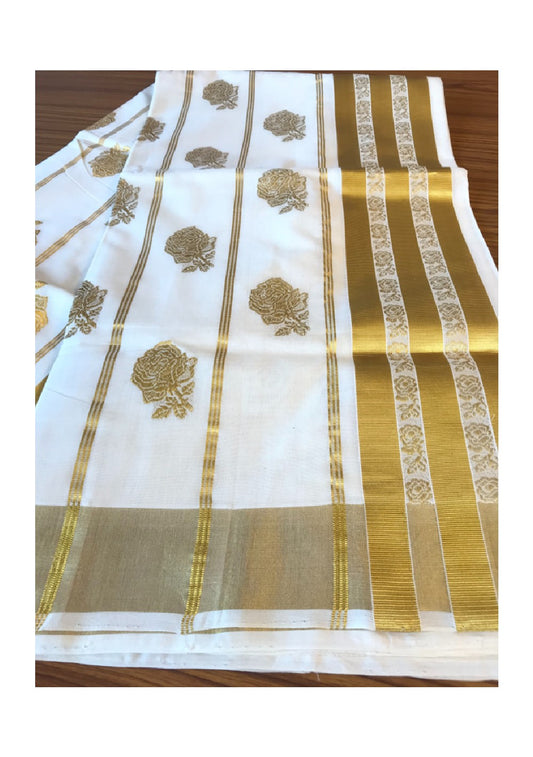 KaithariKada HANDLOOM MILPAAV Balaramapuram Kerala Saree for Women- 100% PURE Cotton - 24 Inch Gold Kasavu ROSE FLOWER PATTERN DESIGN Kara - 1.