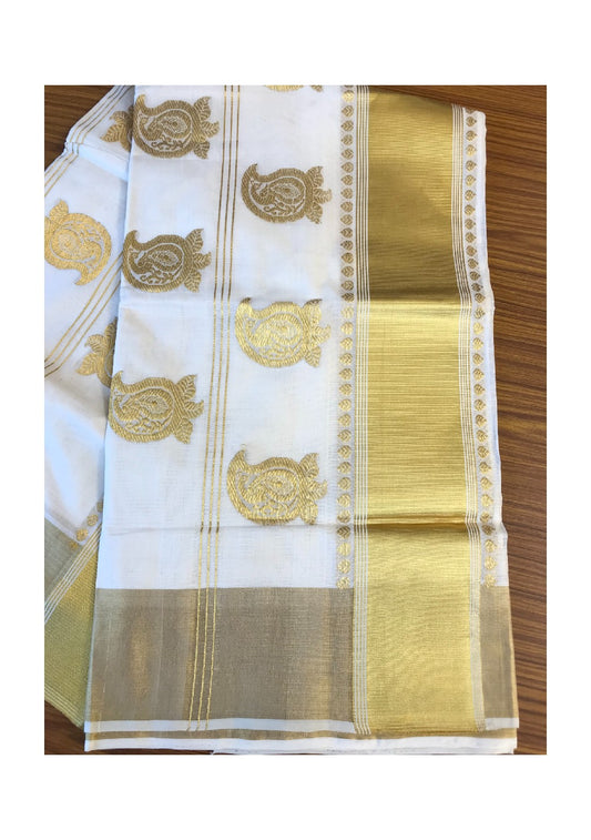 KaithariKada HANDLOOM MILPAAV Balaramapuram Kerala Saree for Women- 100% PURE Cotton - 24 Inch Gold Kasavu MANGO PATTERN DESIGN Kara-7.
