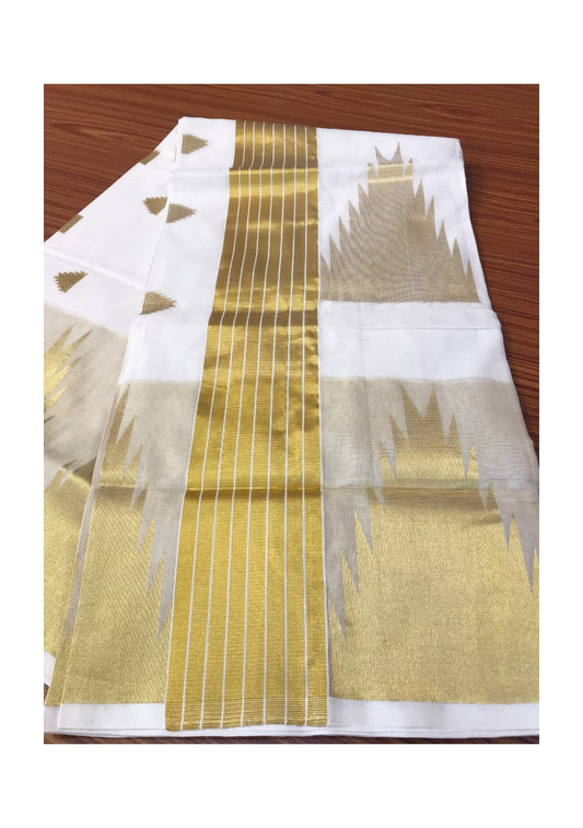 20% Discount!!! KaithariKada HANDLOOM MILPAAV Balaramapuram Kerala Saree for Women - 100% PURE COTTON - Gold Kasavu TEMPLE DESIGN Kara - 12.