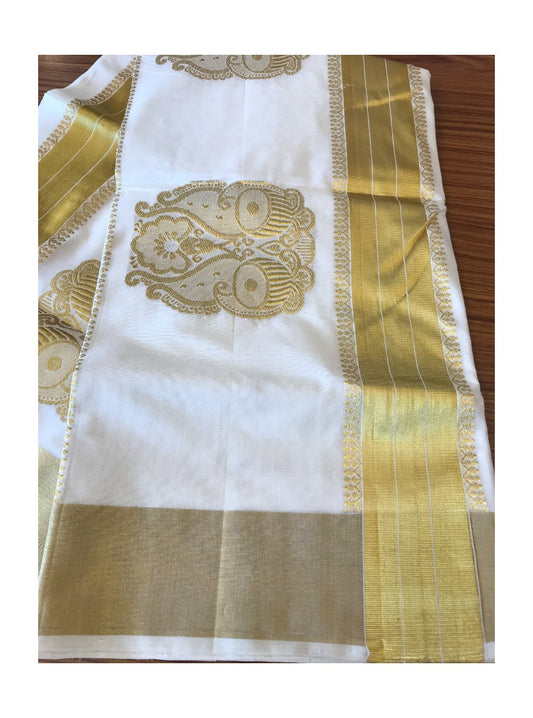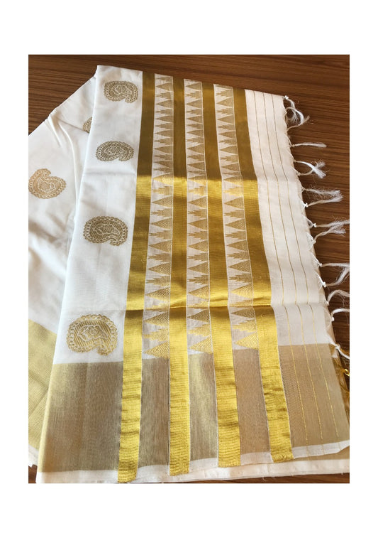 KaithariKada HANDLOOM MILPAAV Balaramapuram Kerala Saree for Women- 100% PURE COTTON - 12 Inch Gold Kasavu MANGO & TEMPLE DESIGN WITH KUNJALAM Kara - 13.