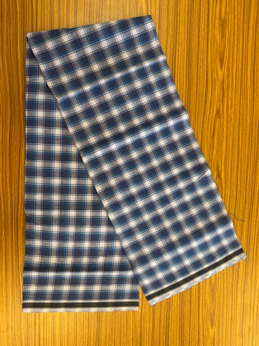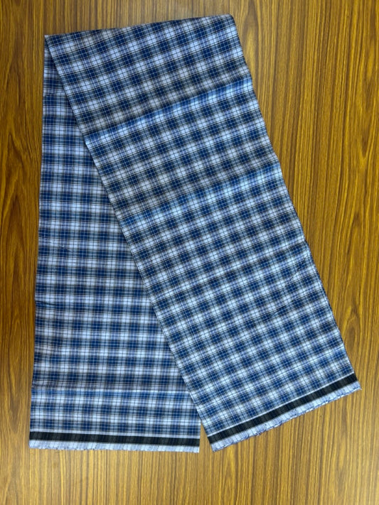 Premium Kathar Type Mund Pure cotton - Kaitharikada - Single Kaily / Lungi - 0.5 inch Black Border with Blue & White Check body (2 meter / 4 muzham) - 43 KK8039 MUT