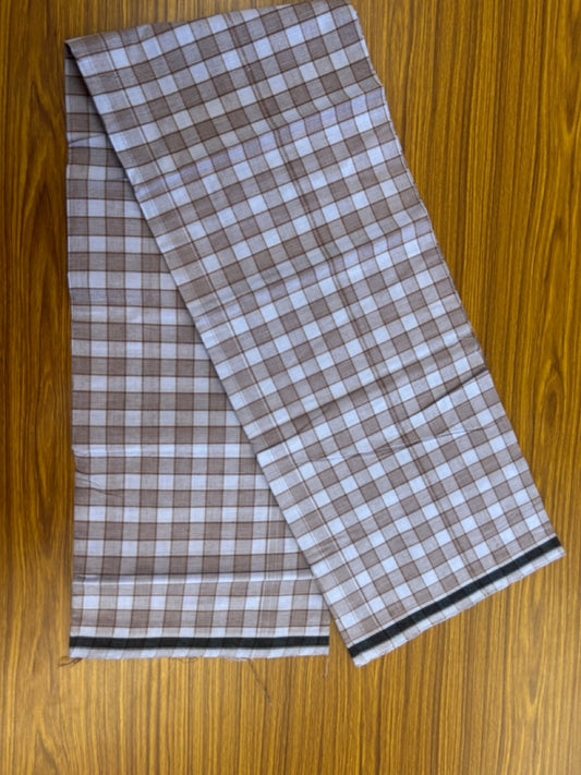 Premium Kathar Type Mund Pure cotton - Kaitharikada - Single Kaily / Lungi - 0.5 inch white Border with Brown, Light Blue , Black & White Check body (2 meter / 4 muzham) - 37 KK8039 MUT