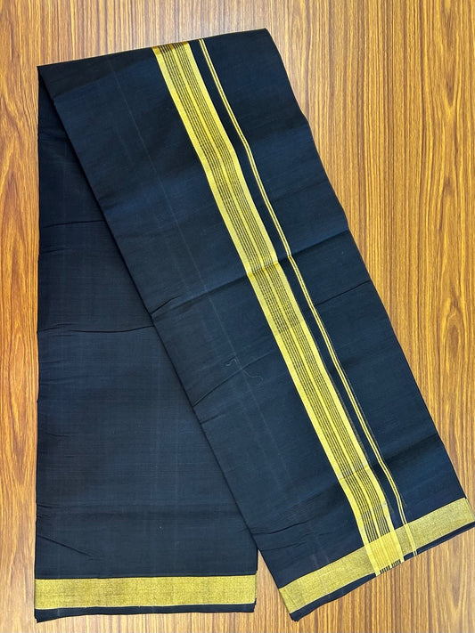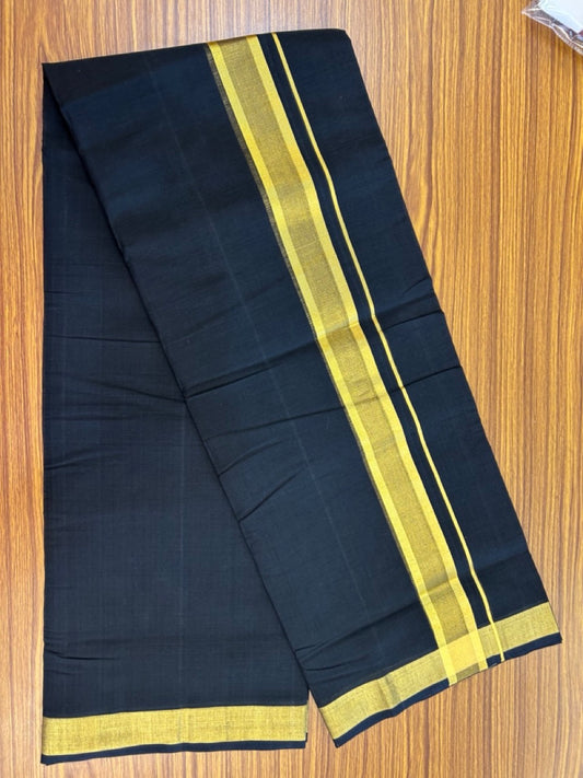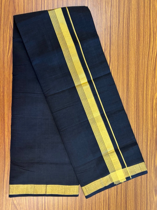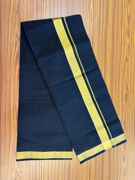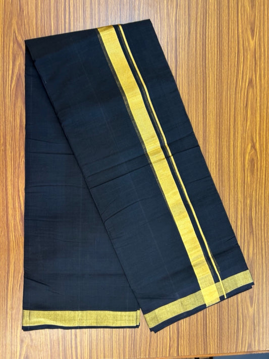 25% Discount! KaithariKada Handloom Unakkupaav Balaramapuram - Pure Cotton Double Mundu/Dhoti (Unbleached) - 100x80 - Black Colour Body - 1.5 inch Gold Kasavu Striped Kara - 4 KK5295 ABH