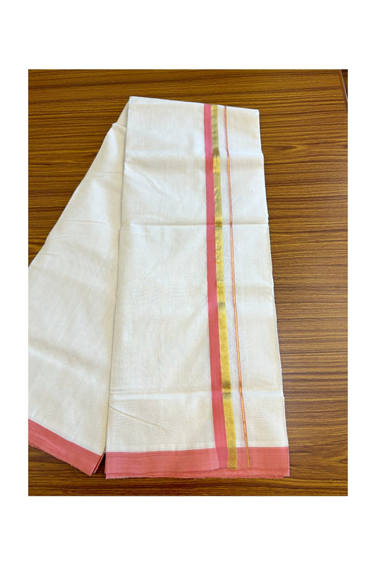25% KaithariKada Handloom Unakkupaav Balaramapuram - 100% Pure Cotton Off white (Unbleached) Double Mundu/Dhoti - 1.5 inch Peach Kara & Gold Kasavu-85