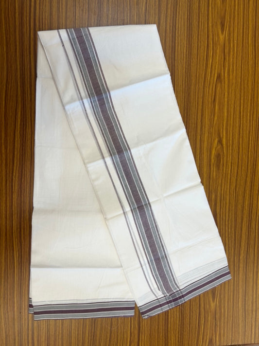 20% Discount ! Kaitharikada Balaramapuram 100% Cotton Pure White Double Mundu/Dothi - 100x100 - 1.5 inch Olive Brown Shaded Striped Kara 3.90 mtr (8 muzham) - 69 KK5294 THI