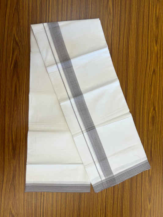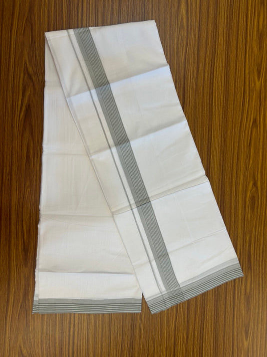 Premium Kathar Type Kavi Mund Pure cotton - Kaitharikada - Single Kaily / Lungi - 1 inch White Stripes Kara kuppadam Border with Grey colour body (2 meter / 4 muzham) - 11 KK8039 MUT