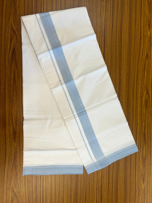 20% Discount ! Kaitharikada Balaramapuram 100% Cotton Pure White Double Mundu/Dothi - 100x100 - 1.5 inch Light Blue Shaded Striped Kara 3.90 mtr (8 muzham) - 71 KK5294 THI