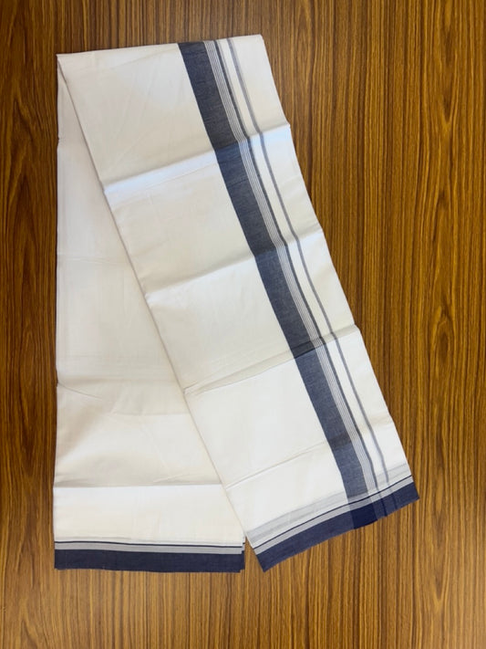 20% Discount ! Kaitharikada Balaramapuram 100% Cotton Pure White Double Mundu/Dothi - 100x100 - 1.5 inch Black & Blue Shaded Striped Kara 3.90 mtr (8 muzham) - 75 KK5294 THI