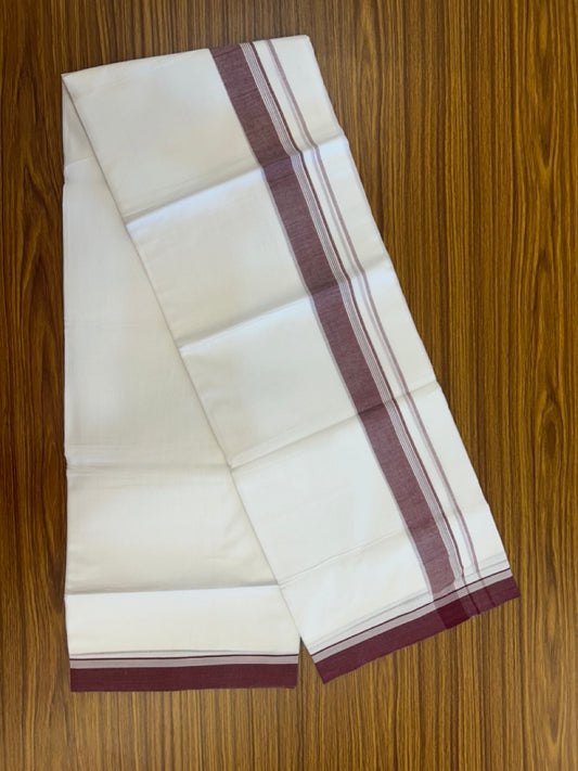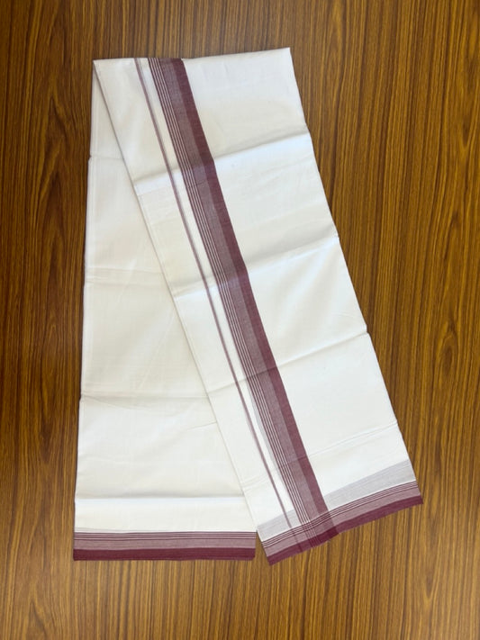 20% Discount ! Kaitharikada Balaramapuram 100% Cotton Pure White Double Mundu/Dothi - 100x100 - 1.5 inch Maroon Shaded Striped Kara 3.90 mtr (8 muzham) - 78 KK5294 THI