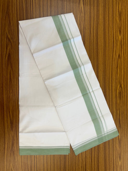 20% Discount ! Kaitharikada Balaramapuram 100% Cotton Pure White Double Mundu/Dothi - 100x100 - 1.5 inch Pista Green Shaded Side Striped Kara 3.90 mtr (8 muzham) - 74 KK5294 THI